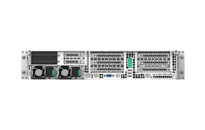 支持 2 個全高全長雙寬 PCI-E ×16 插槽,4個PCI-E×8插槽,2個M.2插槽,以及1個專用OCP端口。